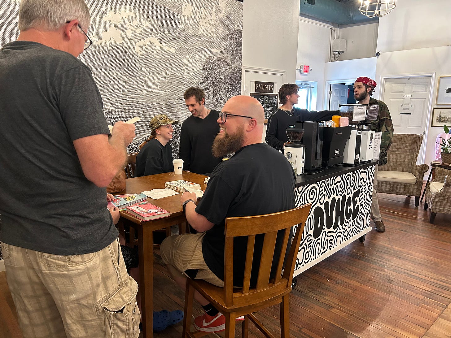 And I forgot to sign Arlene’s extra books. We gladly went back the next morning to sign the shop’s stack of my book and buy a few Christmas gifts for friends and family. The place was abuzz with college students, moms with young kids, young married couples, and groups of girlfriends out for breakfast and a stroll through downtown. There were grandparents with their grandkids and people who had been at the store the night before during the event. The vibe was safe, warm, and cozy. We honestly can’t wait to return.